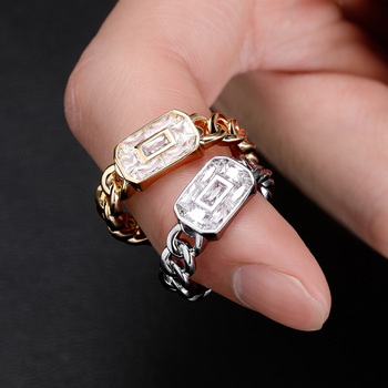 Best Selling Gold-Plated Micro-Infused Zircon Hip-Hop Chain Ring European & American Style Hipster Jewelry Made of Durable Brass