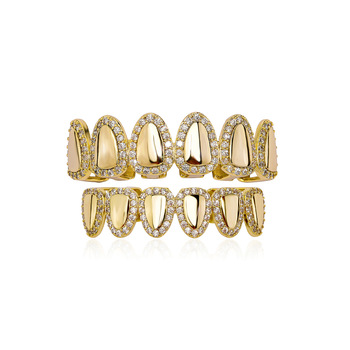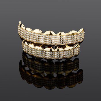 Aliexpress חוצה גבולות אופנה יהלום מלא זירקון braces זהב צבע שיניים מותאם אישית ליל alloween אביזרים ראפ בסדר