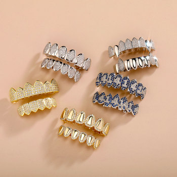유럽 미국 마이크로 상감 지르코늄 펑크 스타일 틀니 세트 재미있는 성격 할로윈 폭발 코스프레 큰 금 보석